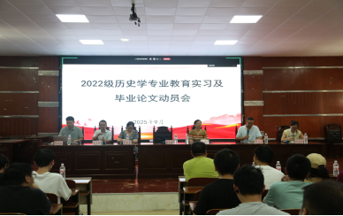 9月17日下午4点30分,法学院在东校区模拟法庭隆重召开2022级历史学毕业生教育实习及毕业论文动员会。法学院院长刘余香、党总支副书记罗耒英、副院长罗文正、副院长喻冰峰、历史学专业负责人郭继红、教务秘书许红燕及全体历史学专任教师出席会议,2022级全体历史学专业同学参加会议。会议由罗文正主持。