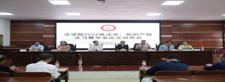 9月23日下午3点,法学院法学系东校区模拟法庭召开实习暨毕业论文工作动员会。学院党总支书记杨家骏,院长刘余香,党总支副书记罗耒英,副院长罗文正,教学负责人喻冰峰,法学系主任赵晓慧,教务秘书许红燕,法学及知识产权专业全体教师,2022级辅导员蒋秋琼出席,2022级全体学生参会。会议由罗文正主持。