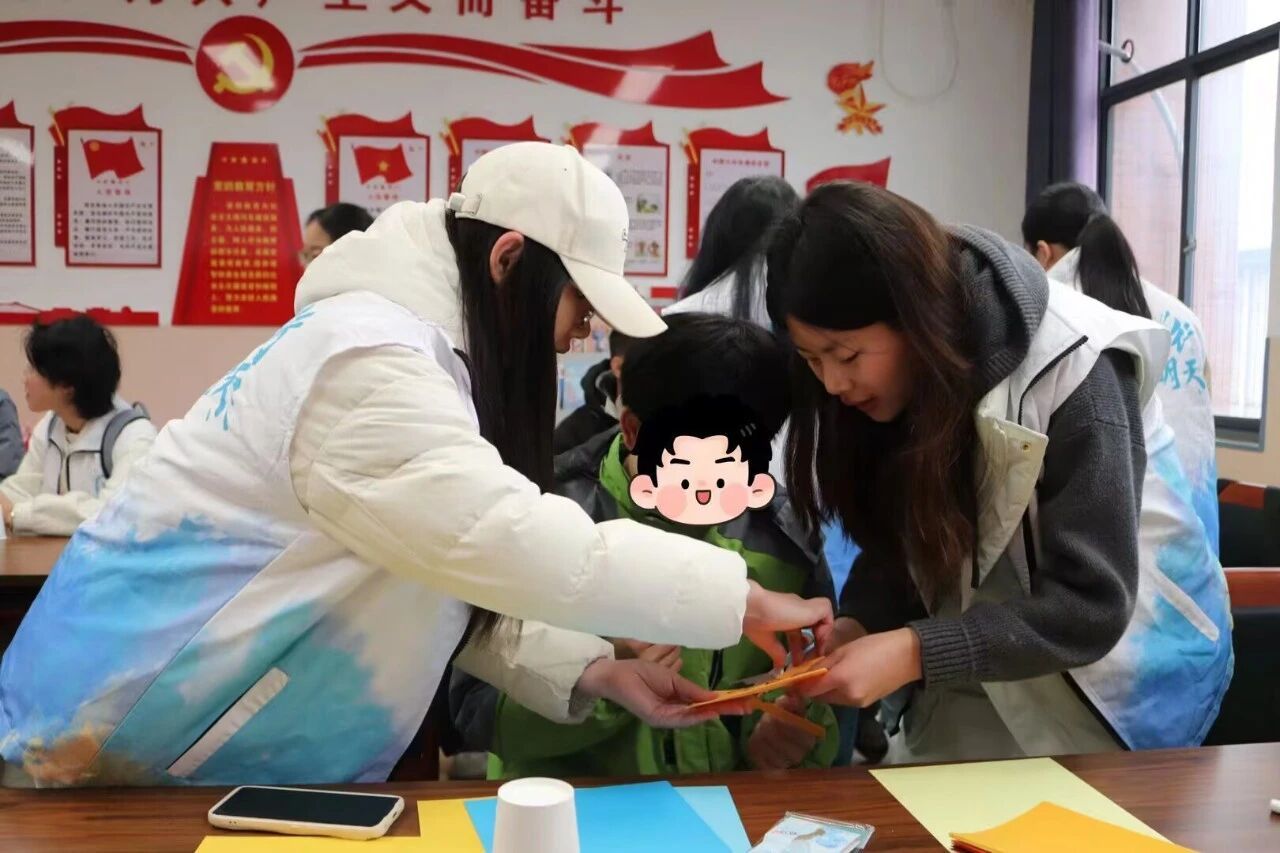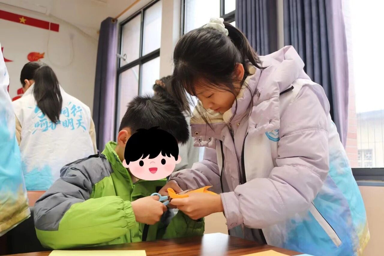 志愿者协助孩子们运用彩纸、布料等材料进行剪裁拼贴,在融洽的氛围中共同完成一幅幅充满童趣的作品。创作过程中,温情在指尖静静流淌,志愿者们悉心引导、耐心陪伴,引导孩子们在动手实践中释放创造潜能,志愿者们也在陪伴中逐渐体悟到了责任与温情。
