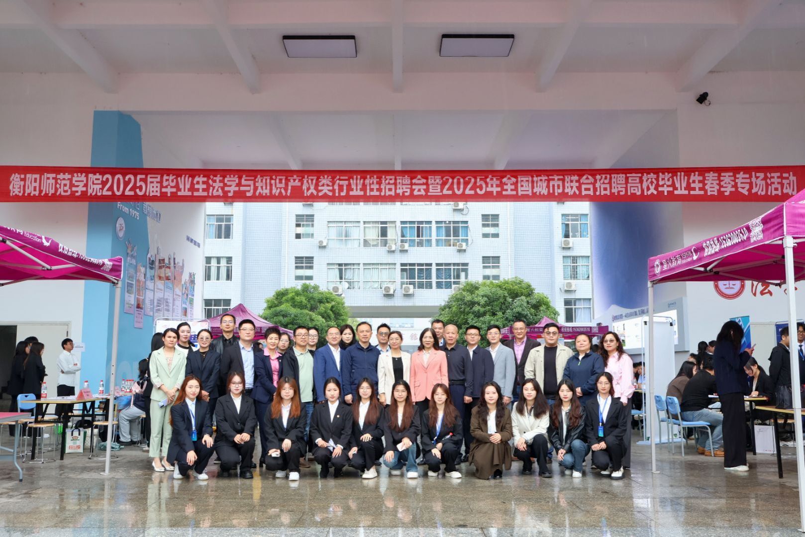 2.招聘会 | 搭建就业桥梁,助力人才启航。4月27日,我院于模拟法庭及仁智楼AB栋间举办法学类专场招聘会。院长刘余香、党总支副书记罗耒英、副院长罗文正、学工办主任兼团委书记黎兆萍,辅导员蒋秋琼、黄梓芸、任英杰等出席活动。刘余香介绍学院发展成果与人才培养特色,强调深化校企合作对人才培养与行业发展的重要意义,并鼓励毕业生把握机遇、积极求职。活动邀请多家用人单位参与,为毕业生搭建高效的双向择业平台,进一步拓宽就业渠道,是学院推动产教融合、提升人才社会适应能力的关键举措,充分彰显学院以就业为导向的育人成效,为实现毕业生更充分、更高质量就业提供了有力支撑。