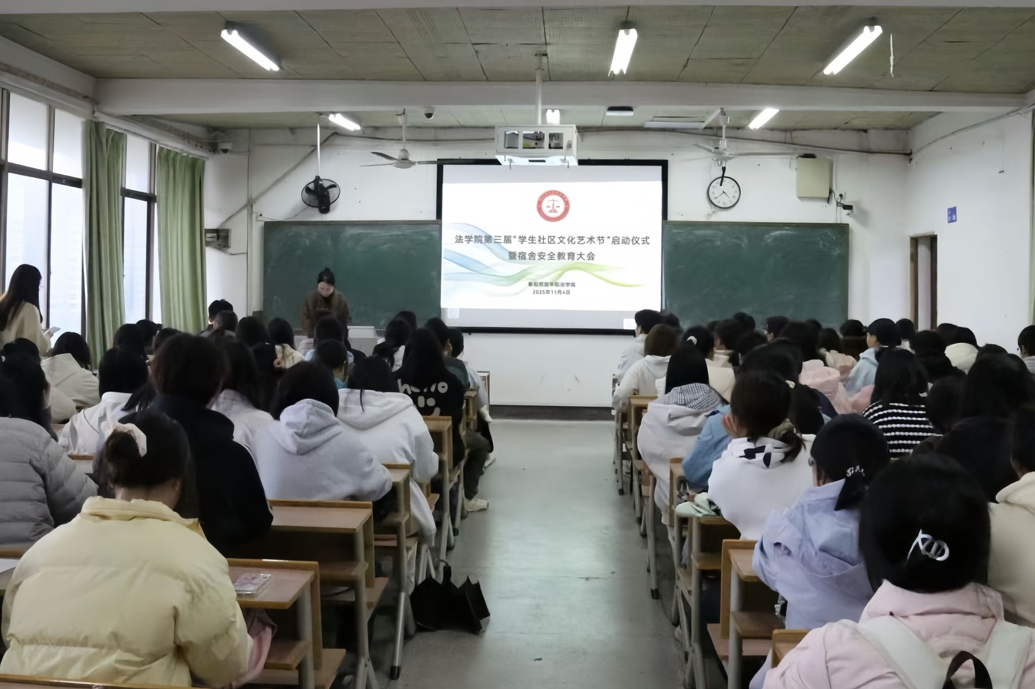 为筑牢宿舍安全防线、推进宿舍文化艺术节筹备工作。11月4日下午,我院于西校区明德楼601举行第三届“一站式”学生社区文化艺术节暨2025年“宿舍文化节”启动仪式与安全教育大会。我院党总支副书记罗耒英,辅导员蒋秋琼、任英杰、刘徽到会指导,2025级班团、生活委员、心理委员及寝室长参加此次会议。本次会议由刘徽主持。