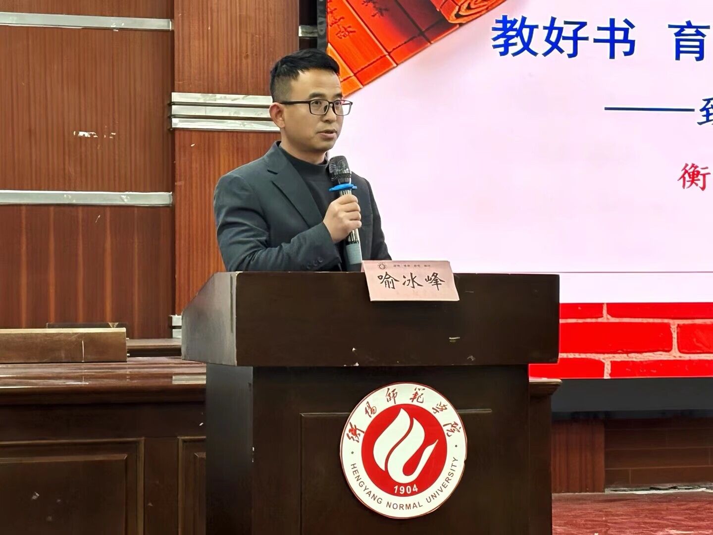 讲座尾声,喻冰峰作总结发言,他结合高开德老师的分享,提炼出“从严从高”的成长准则,并指出这一准则是推动个人实现快速成长的关键所在,他将高开德老师的分享诠释为一场教育传递与爱心传递的生动实践。最后,他寄语全体同学,未来步入工作岗位后仍要以高标准严格要求自己,成为一名优秀的人民教师,并宣布本次讲座圆满落幕。