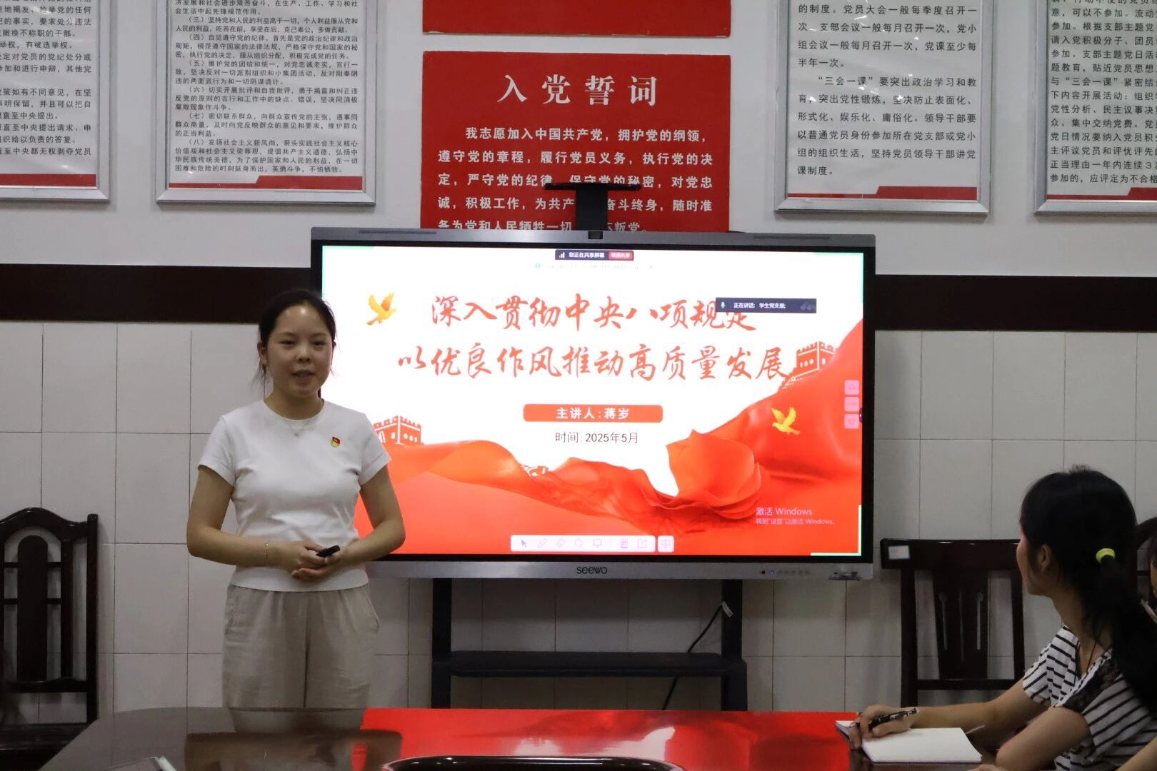 党课伊始,蒋岁从充分认识开展深入贯彻中央八项规定精神学习教育的重要意义、贯彻落实中央八项规定精神,推进作风建设走深走实两个方面深入讲解学习了中央八项规定相关精神。