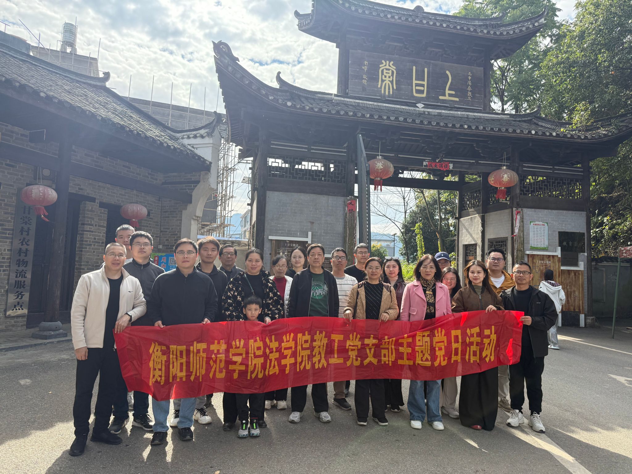 为深入学习贯彻党的二十届四中全会精神,提升党员党性修养,增强党组织的凝聚力和战斗力,法学院教职工党支部于2025年11月22日-23日,组织26名党员前往陶铸故居、江永上甘棠古村等地开展了一场别开生面的主题党日活动。此次活动旨在通过实地参观学习,让党员们重温革命历史、传承红色基因,同时亲身感受中国优秀传统文化的魅力,领略改革开放、乡村振兴和中国式现代化的伟大成果。